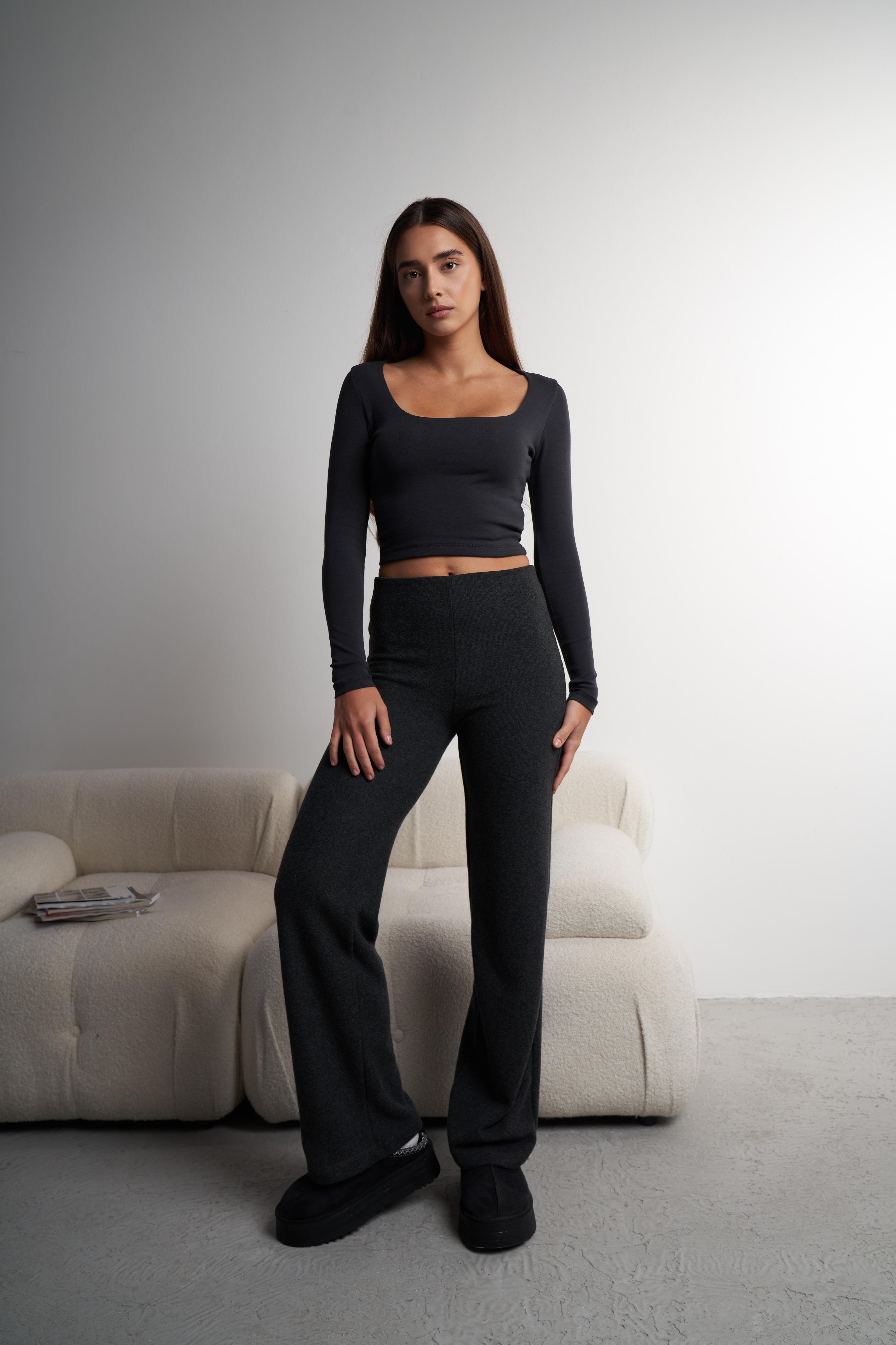 Antrasit Bel İçi Lastikli Triko Kumaş Bol Paça Pantolon