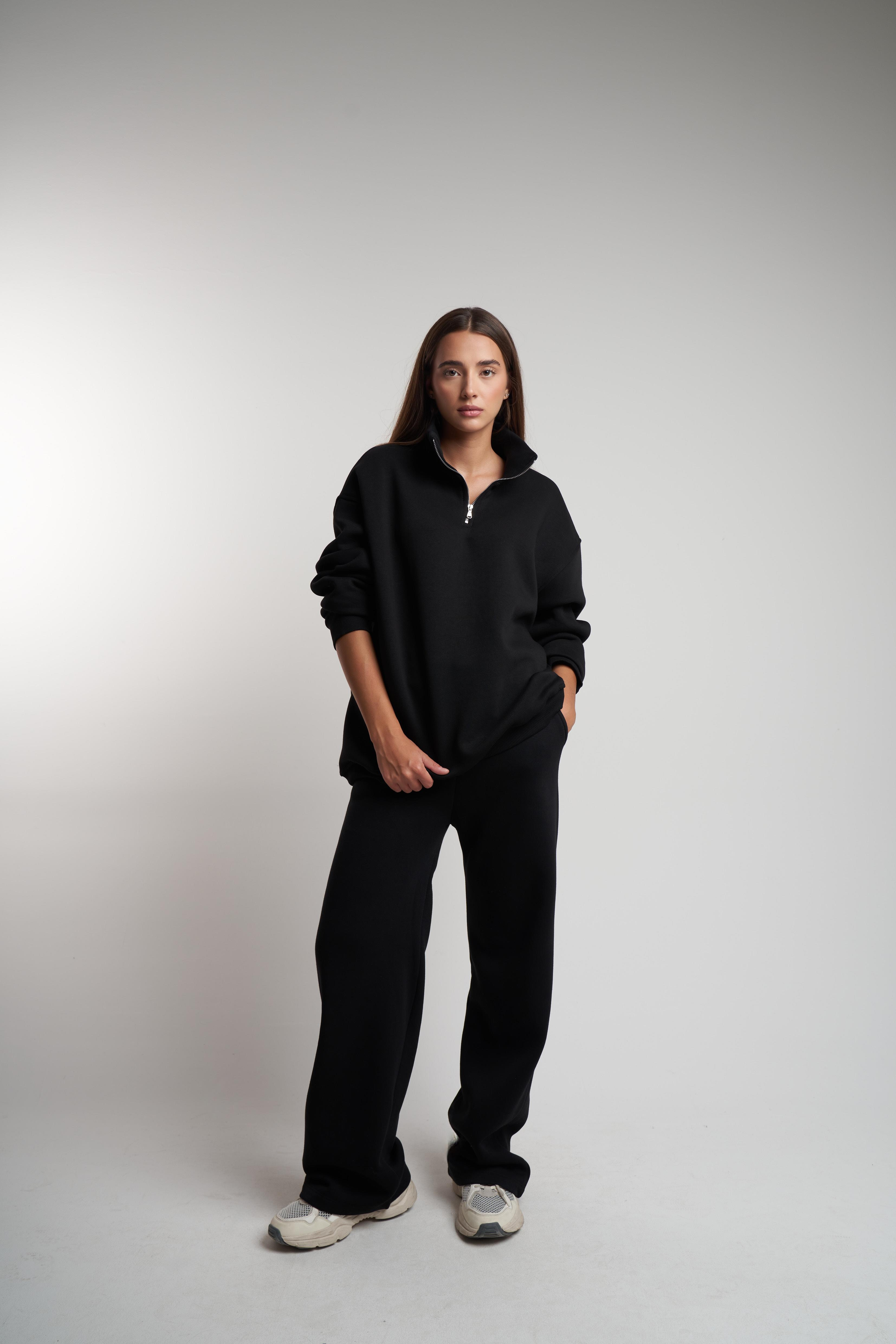 Bel Lastik Şardonlu Bol Paça Pantolon Siyah (P1781776)