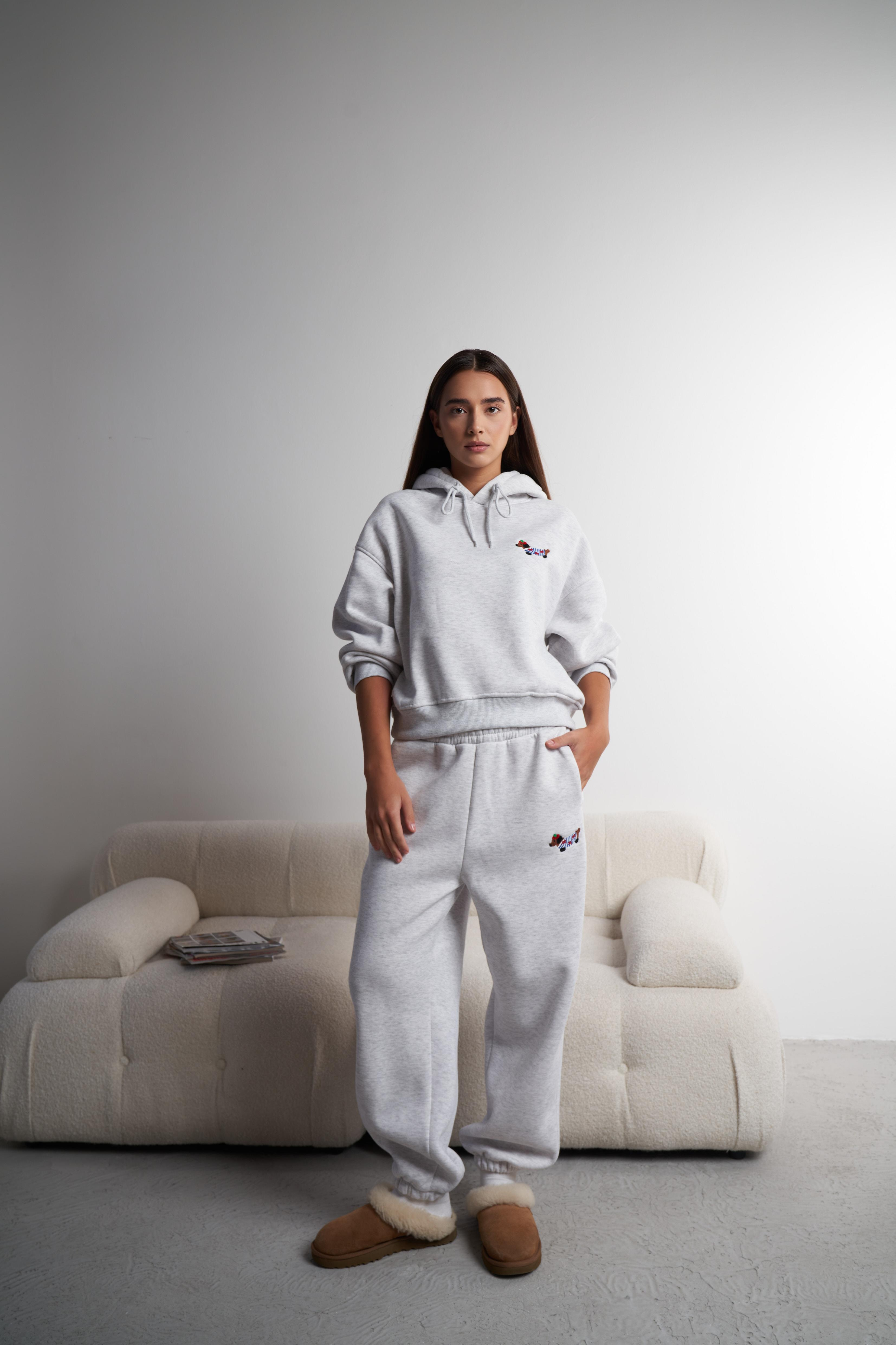 Bel Paça Lastik Şardonlu Sol Nakış İşleme Detaylı Eşofman Altı Karmelanj