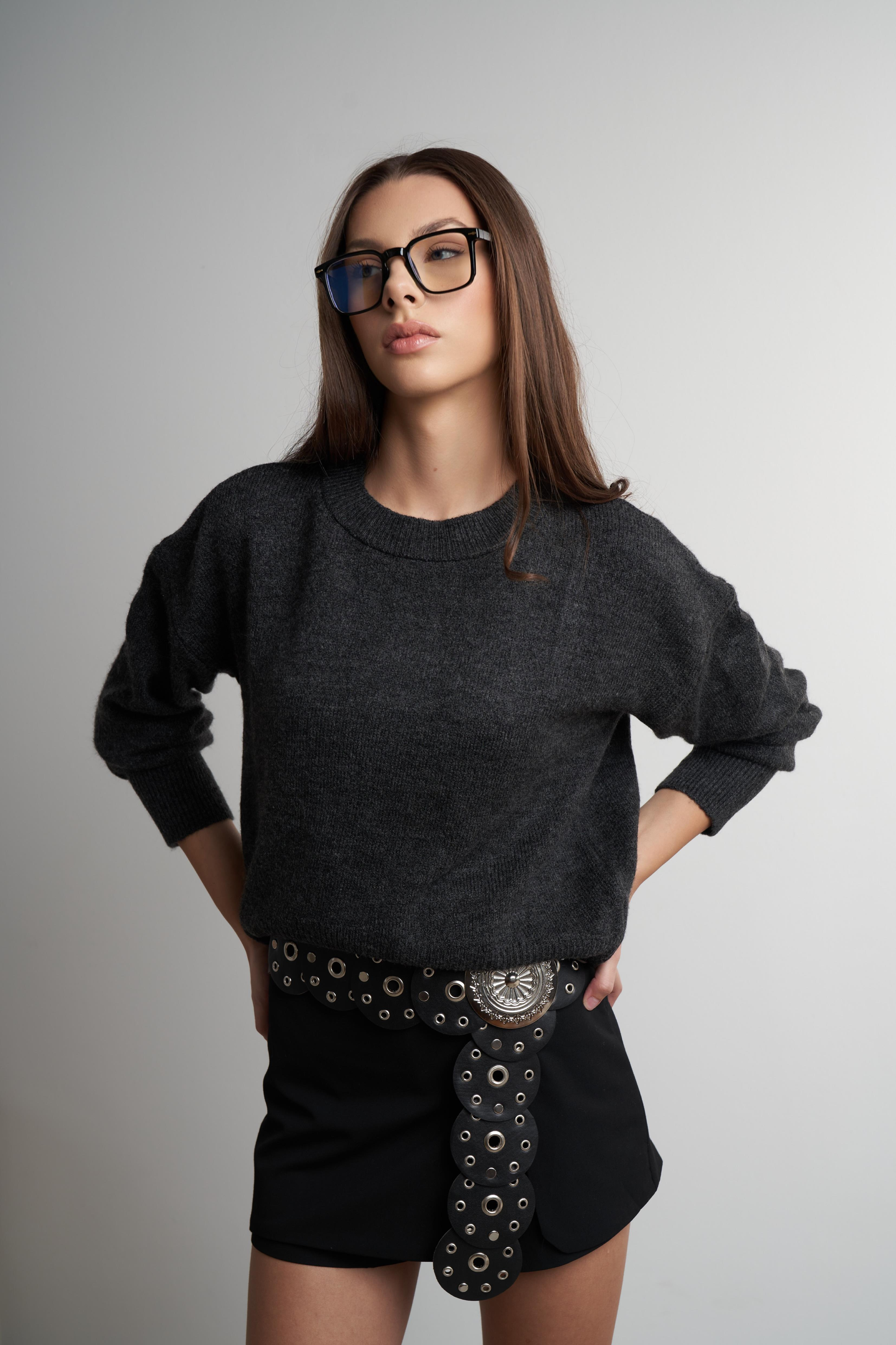 Bisiklet Yaka Etek Dikiş Detaylı Uzun Kol Triko Kazak Antrasit