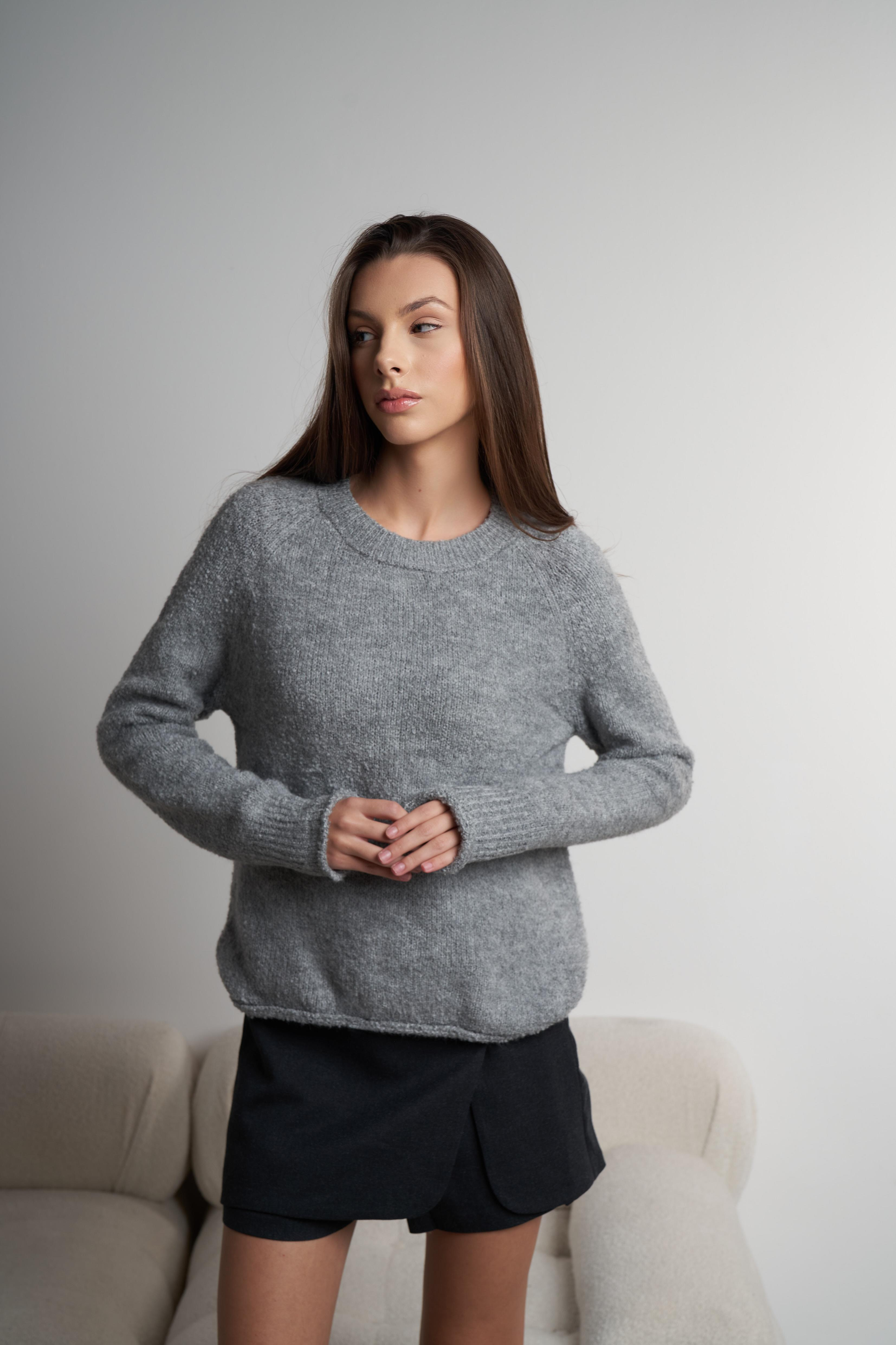 Bisiklet Yaka Etek Dikiş Detaylı Uzun Kol Triko Kazak Gri