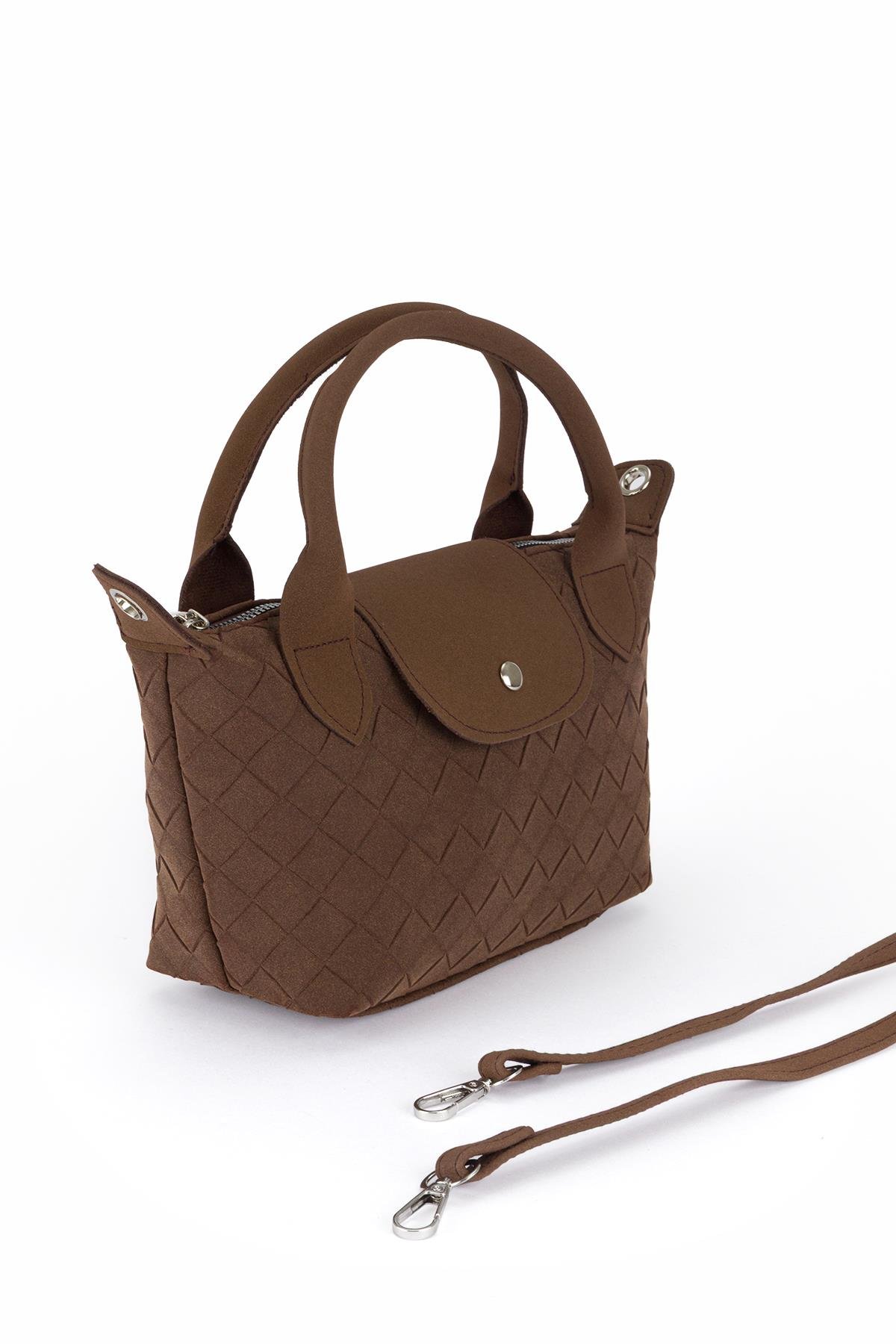Süet Baklava Desenli Çapraz Çanta Kahve (D1420943-Ç13)