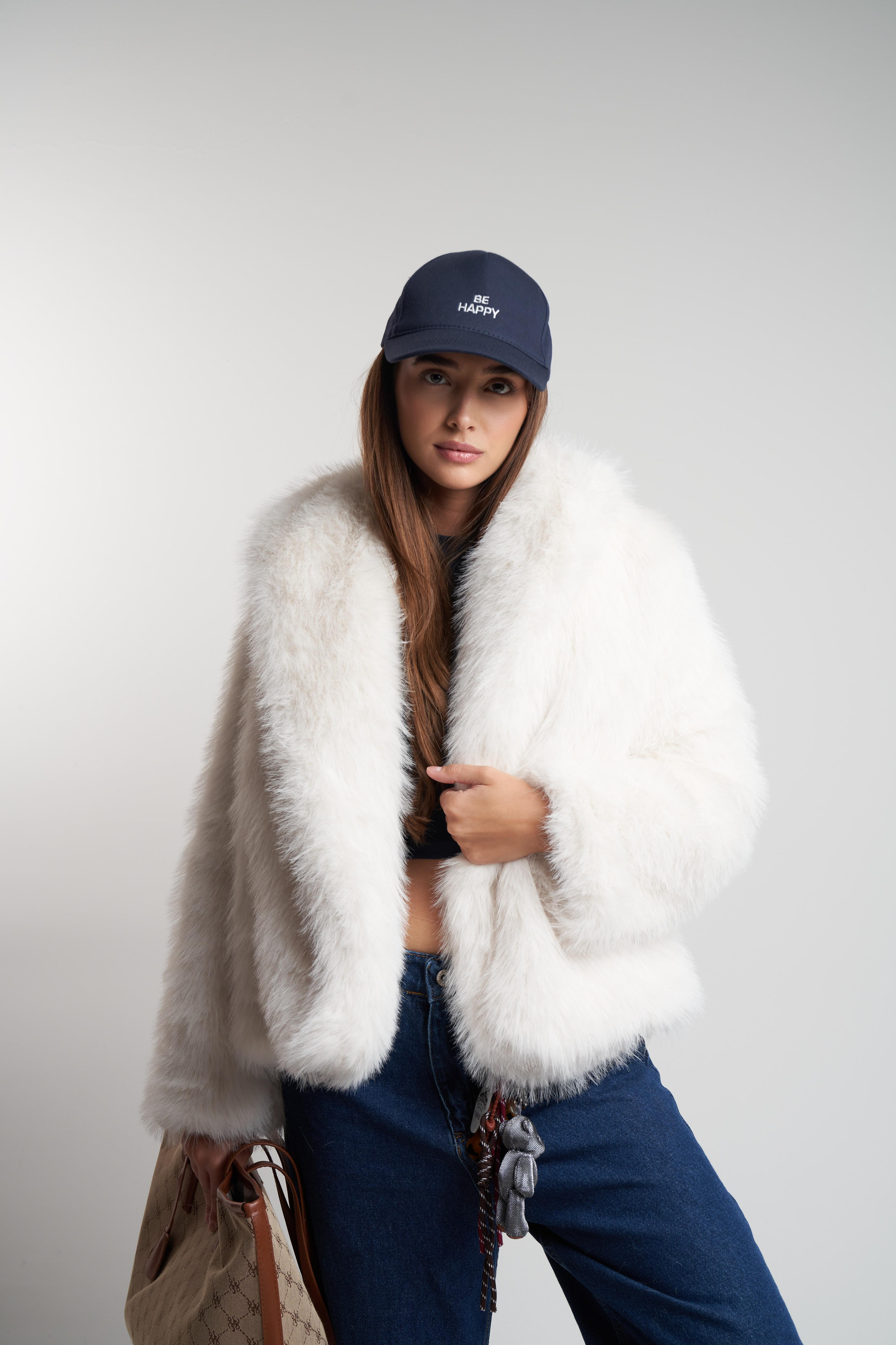 Yakalı Suni Kısa Kürk Mont Ekru